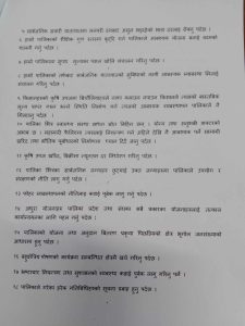 नेपाल भारत बीच भएका सन्धी सम्झौता,एम सि सि सम्झौता,पालिका बढेको बेरूजु पालिकाको अनुत्पादक मुलक क्षेत्रमा भइरहेको खर्च नियन्त्रण,सहकारी स्थापना,अनुगमन र नियमन,सार्वजनिक यातायातको मनपरि भाडादर,शैक्षिक गुरुयोजना,कृषि उपज खरिद बिक्रीमा न्युनतम दर निर्धारण,पालिका भित्रका सार्वजनिक जग्गा पहिचान,उपयोग र संरक्षण,फोहोर व्यवस्थापन,पालिका,प्रदेश र संघका अधुरा योजना समयमै कार्यान्वयन गर्न पहल गर्नुपर्ने लगायतका बिषयहरू समेटिएको २५ बुँदे ज्ञापनपत्र