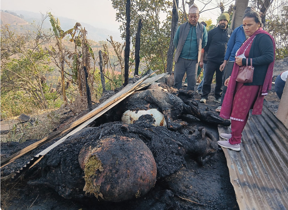 अर्घाखाँची । अर्घाखाँची जिल्लाको पाणिनि गाउँपालिका  स्थित एक गोठमा आगलागी हुँदा बस्तुभाउ जलेर नष्ट भएका छन् ।पाणिनि गाउँपालिकाको वडा नम्बर ३ ढाबका चिरञ्जीवी रास्कोटिको गोठमा आगलागी हुँदा गोठमा भएका सम्पूर्ण बस्तुभाउ जलेर नष्ट भएका हुन् । आइतबार राति करिब १ बजेको समयमा आगलागी भएको स्थानीयको भनाई छ । आगलागीबाट गोठ जलेर नष्ट भएको छ भने ९ वटा बाख्रा, तीन वटा भैंसी लगायत गोठमा भएका सम्पूर्ण बस्तुभाउ समेत जलेर नष्ट भएको जिल्ला प्रहरी कार्यालय अर्घाखाँचीका सूचना अधिकारी प्रहरी निरीक्षक बिक्रम रिजालले जानकारी दिए । आगलागीबाट ५ लाख बराबरको क्षति भएको अनुमान गरिएको छ । गोठमा विद्युत तार सट भई आगलागी भएको थियो ।